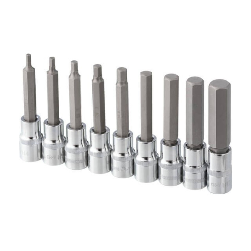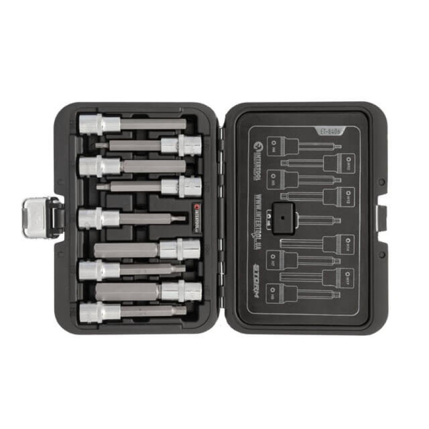 Набір біт HEX в тримачі призначений для монтажу і демонтажу кріплень з типом шліца: H4, H5, H6, H7, H8, H10, H12, H14, H17. Даний комплект змінних біт підходить для використання спільно з рукоятками з храповим механізмом (тріскачками), тримачами, з посадковим квадратом 1/2". Подовжені біти 100 мм дозволяють ефективно працювати у важкодоступних місцях та гарантують надійне зчеплення зі шліцом кріплення.