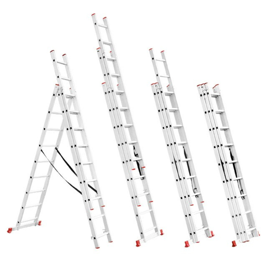 Складна двосекційна драбина стане у пригоді в будь-якій ситуації, як для професійних майстрів для роботи на висоті, так і для побутових потреб, а також для працівників складів, магазинів та ін. Драбина універсальна і підходить під будь-які задачі, максимальна висота становить 5,93 метрів, при цьому сходи можуть трансформуватися в будь-яке з чотирьох положень. Вона зручна для використання в домашньому господарстві, наприклад, замінити лампочки, пофарбувати стіни, помити вікна, також її можна використовувати як сходи для даху та ін.