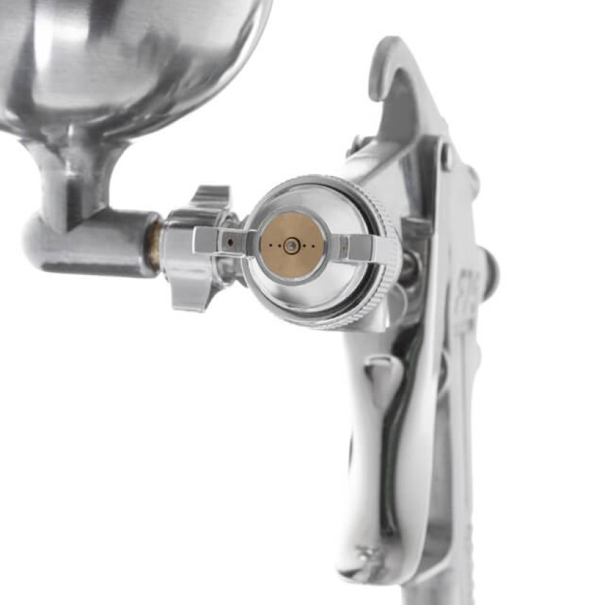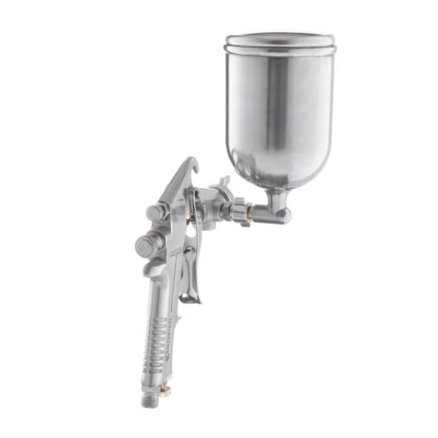 Оснащений бачком, який може змінювати кут нахилу щодо пістолета, що дуже зручно під час роботи у важкодоступних місцях. Повністю металевий корпус пістолета надійний та довговічний, бачок з металу дозволяє використовувати агресивніші ЛФМ.