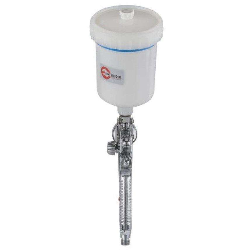 Фарборозпилювач оснащений пластиковим бачком об’ємом 600 мл, завдяки чому можна візуально контролювати рівень фарби, що дуже зручно. При необхідності можна замінити бачок на аналогічний PT-1901 або металевий PT-1906.