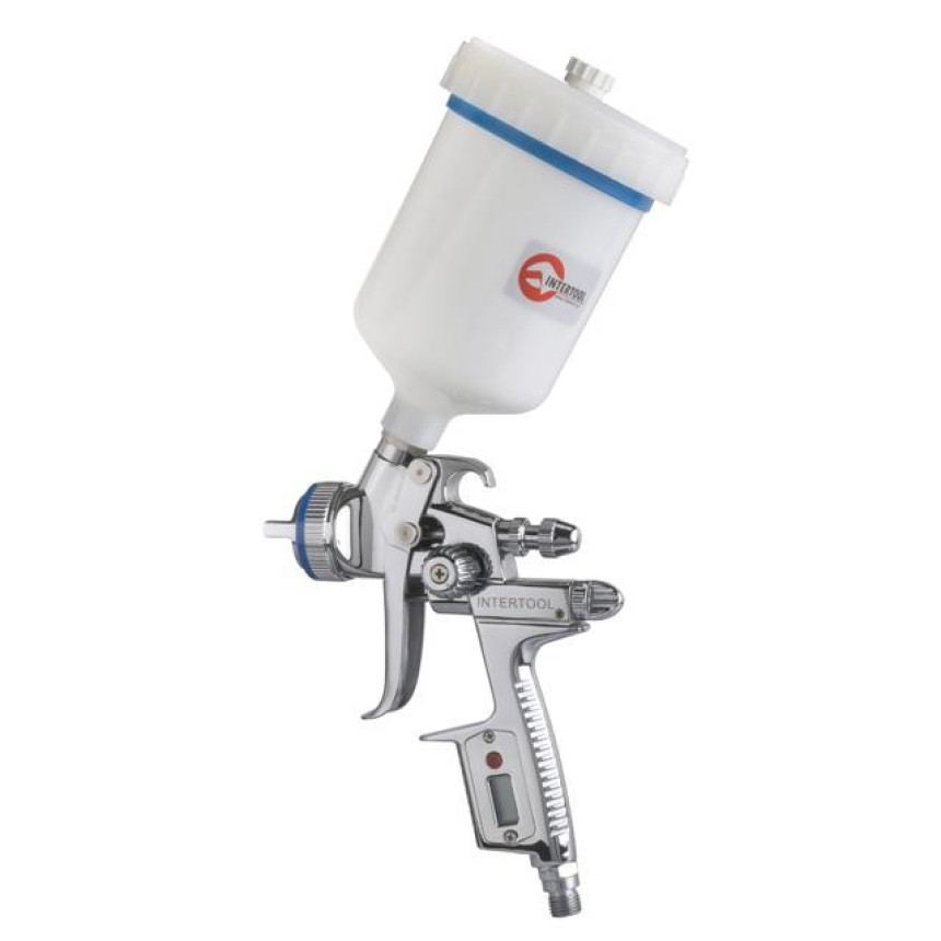 Пістолет має чотири налаштування, що дозволяє вам більш точно відрегулювати подачу повітря, подачу фарби, ширину та форму факела (max 27 см), а також налаштувати тиск при подачі повітря на фарбопульт. Встановлено цифровий манометр для контролю показника тиску, захищений міцним склом, який витримує агресивні матеріали та не темніє з часом, розміщений у повністю герметичній конструкції.