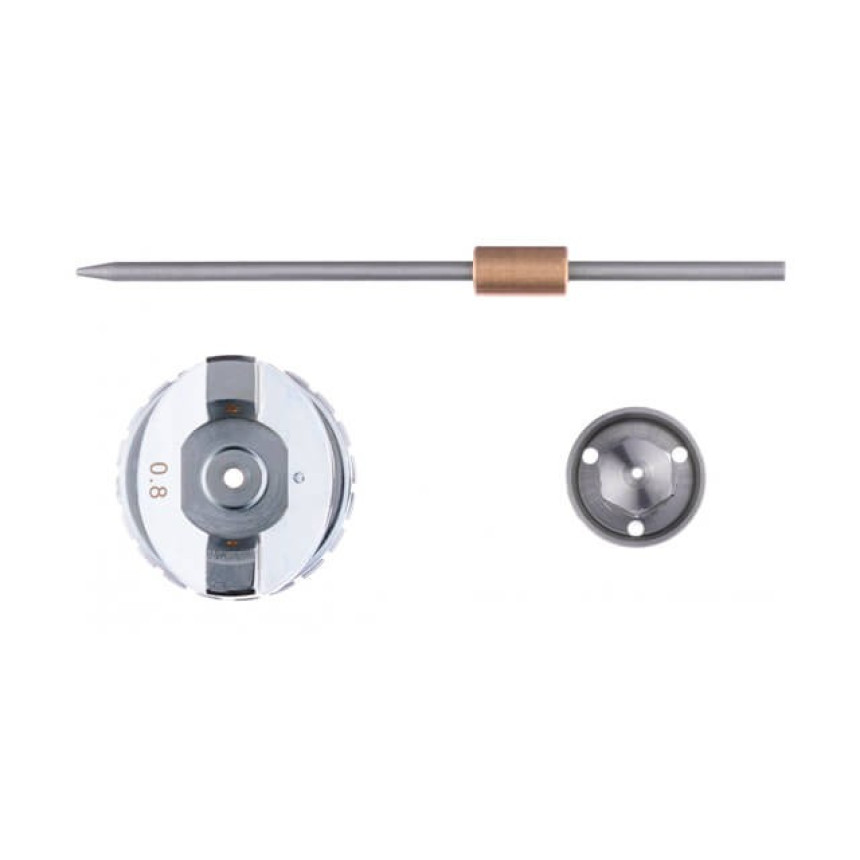 Змінний комплект форсунок використовують для заміни старих, зламаних форсунок фарбувальних пістолетів. Також, в залежності від в'язкості матеріалу, Ви можете обрати різні за діаметром форсунки: 0,8; 1,0; 1,2 мм.