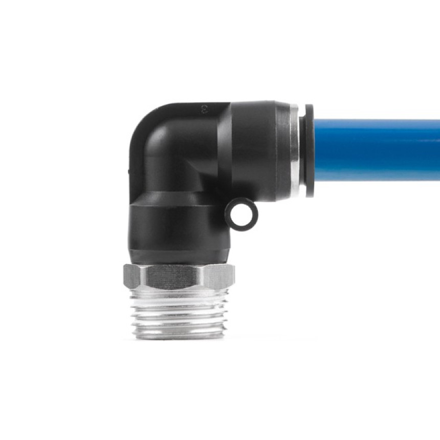 Цангове з'єднання L-подібної форми використовується для створення пневматичних магістралей і для монтажу пневмосистем. Забезпечує повністю герметичне з'єднання різних пневматичних шлангів без пошкодження їхньої поверхні (PU, PE, PA) - поліуретанових, поліетиленових, поліамідних тощо.