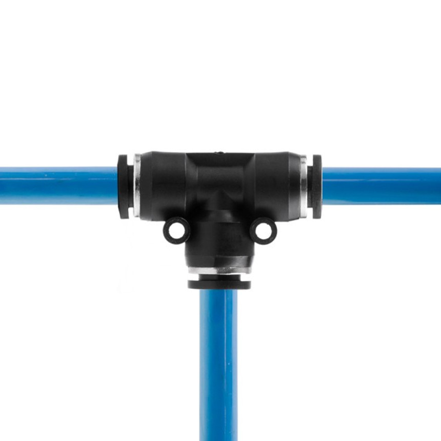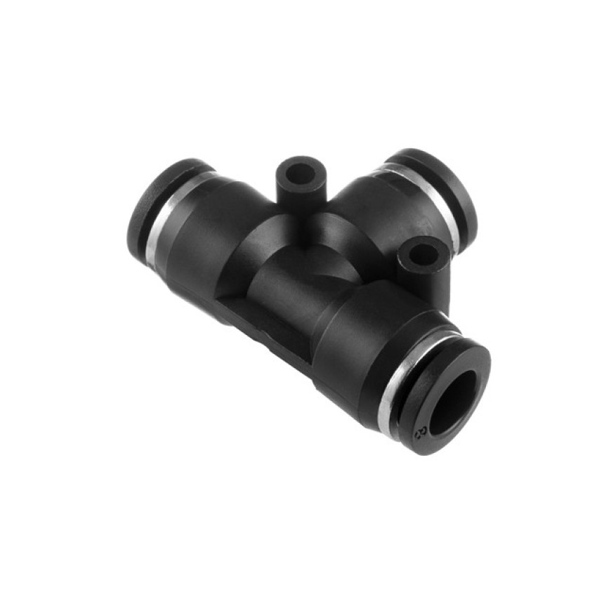 Цангове з'єднання T-подібної форми використовується для створення пневматичних магістралей і для монтажу пневмосистем. Забезпечує повністю герметичне з'єднання різних пневматичних шлангів без пошкодження їхньої поверхні (PU, PE, PA) - поліуретанових, поліетиленових, поліамідних тощо.