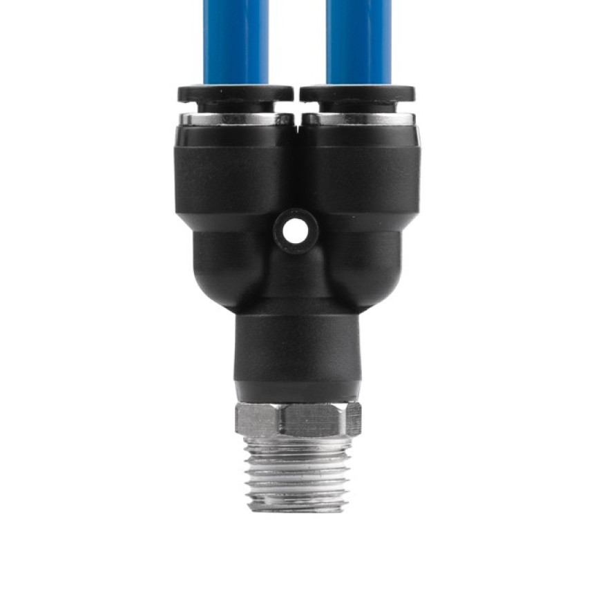 Цангове з'єднання Y-подібної форми використовується для створення пневматичних магістралей і для монтажу пневмосистем. Забезпечує повністю герметичне з'єднання різних пневматичних шлангів без пошкодження їхньої поверхні (PU, PE, PA) - поліуретанових, поліетиленових, поліамідних тощо.