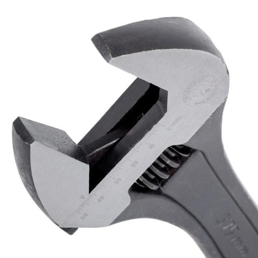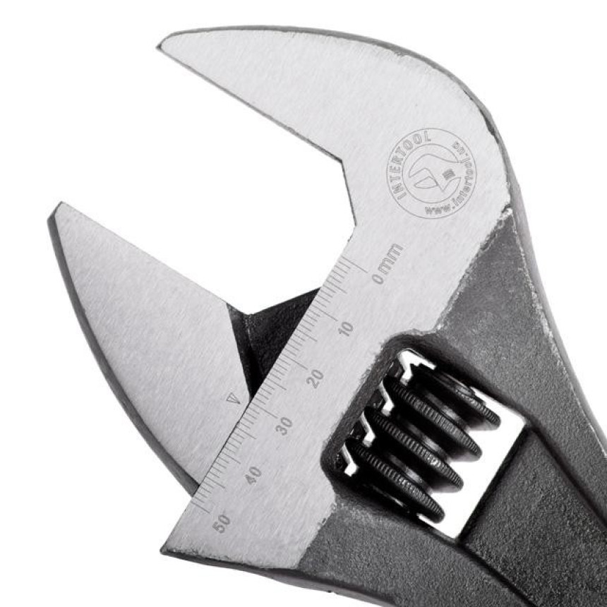 Розвідний механізм міцний та не дає люфт у роботі завдяки конструкційним особливостям ключа. Точно відкалібрувати необхідний розмір для захоплення кріплення дозволяє нанесена міліметрова шкала, що не стирається з часом. Довга ручка дозволить зручно маневрувати розвідним ключем та застосовувати ще більше зусиль.