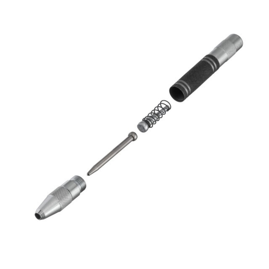 Завдяки своїй конструкції, на кернер варто лише трохи натиснути, щоб отримати неглибоку лунку, в яку твердо стане свердло.