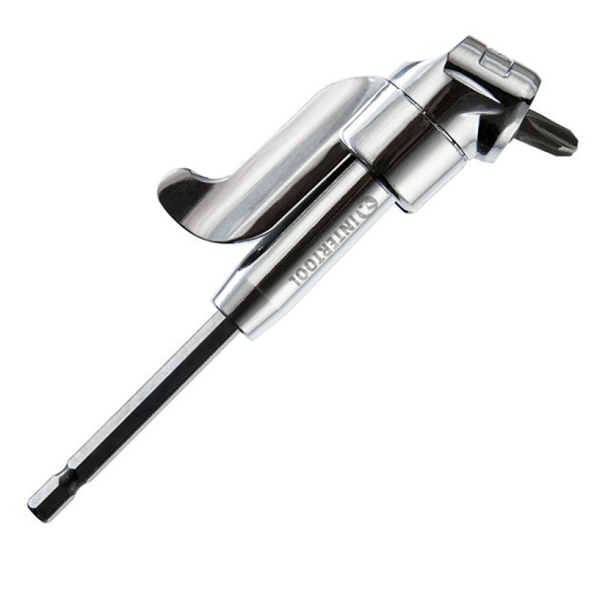 Кутовий адаптер INTERTOOL VT-0106 дозволяє виконувати операції під кутом 90°. Купити адаптер INTERTOOL VT-0106 можна для роботи з кріпленнями в місцях з обмеженим доступом. Адаптер виготовлений з хром-ванадієвої сталі, яка забезпечує міцність і довговічність експлуатації інструмента
