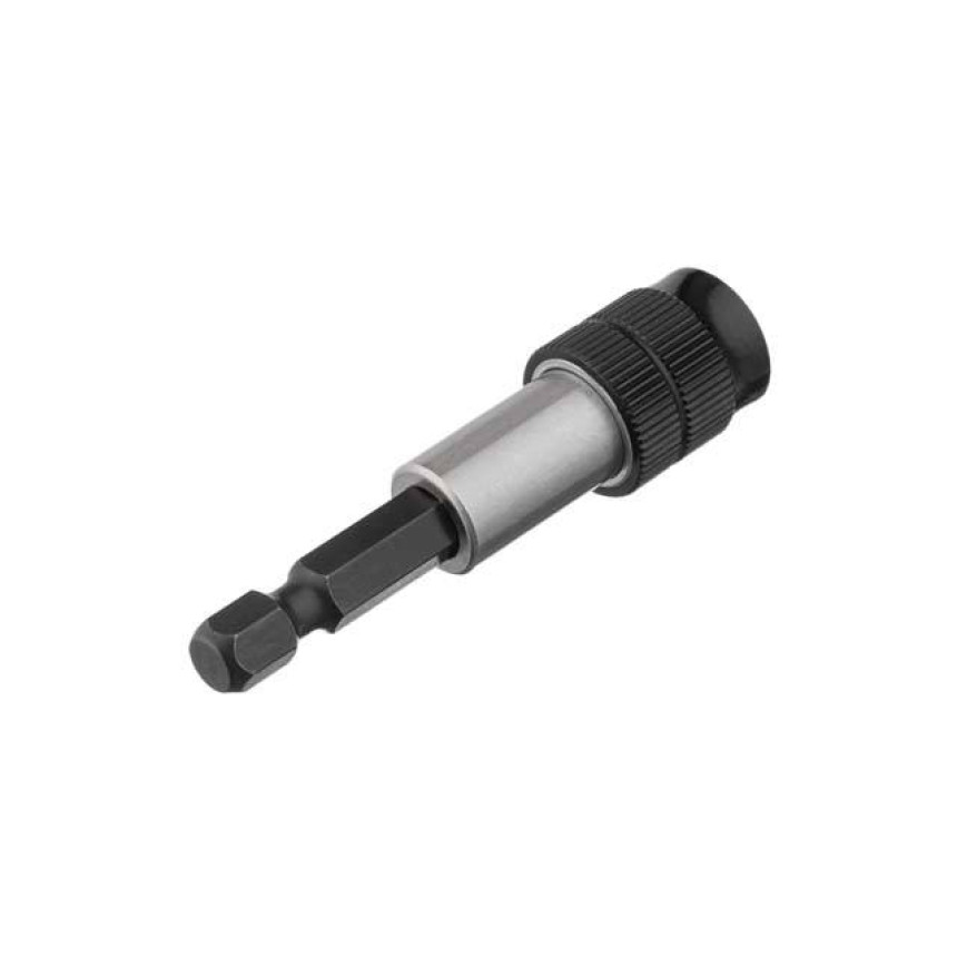 В тримачі встановлений магніт силою 400 г, який надійно фіксує біти і полегшує вгвинчування гвинтів. Окрім магніту реалізований фіксатор, який виключає випадіння біт під час роботи. Відтягнувши втулку тримача назад Ви легко встановите чи дістанете біту з посадочного місця