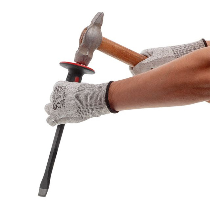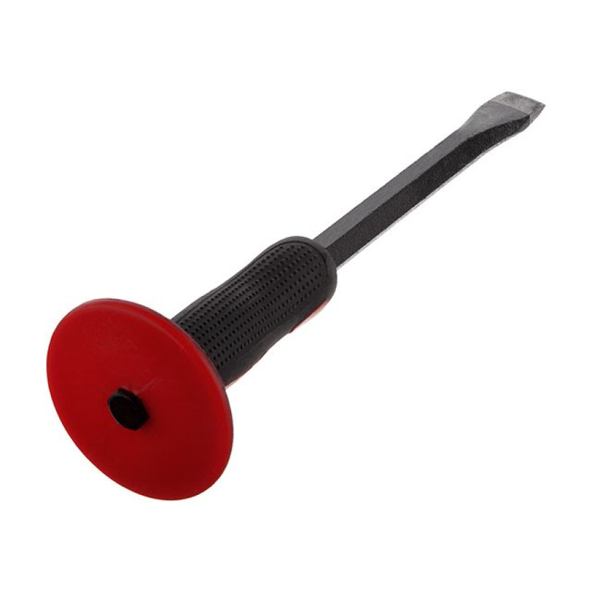 Інструмент виготовлений з високоякісної інструментальної сталі, робоче лезо додатково загартоване для забезпечення більшої міцності та довговічності. Ручка ергономічної форми, виготовлена із сучасного матеріалу – скловолокна. Міцний та легкий, він забезпечує максимальний комфорт під час інтенсивних робіт. Гумове покриття дозволяє надійно утримувати інструмент, що сприяє точній роботі. Спеціальний майданчик на торці збільшує ударну площу та захищає руки від випадкового удару молотком.