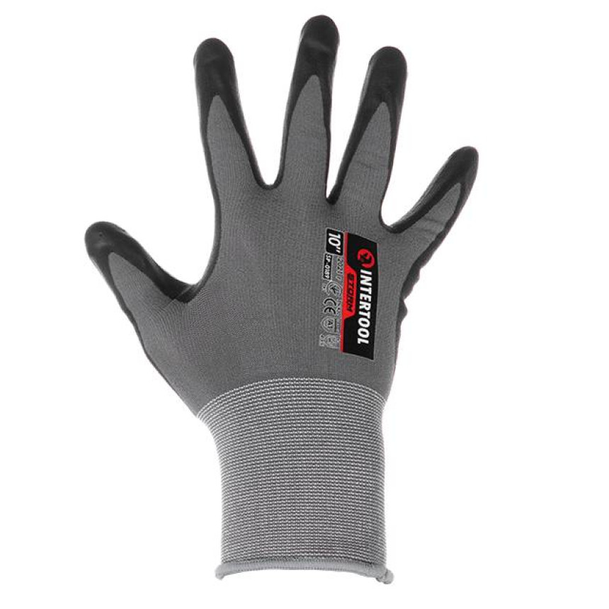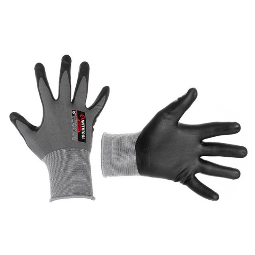 Рукавиці INTERTOOL SP-0189 призначені для робіт з агресивним середовищем (різні змащувальні матеріали, мастила, бензин тощо), стануть у пригоді в автомайстернях, а також для побутових, будівельних та садових робіт.