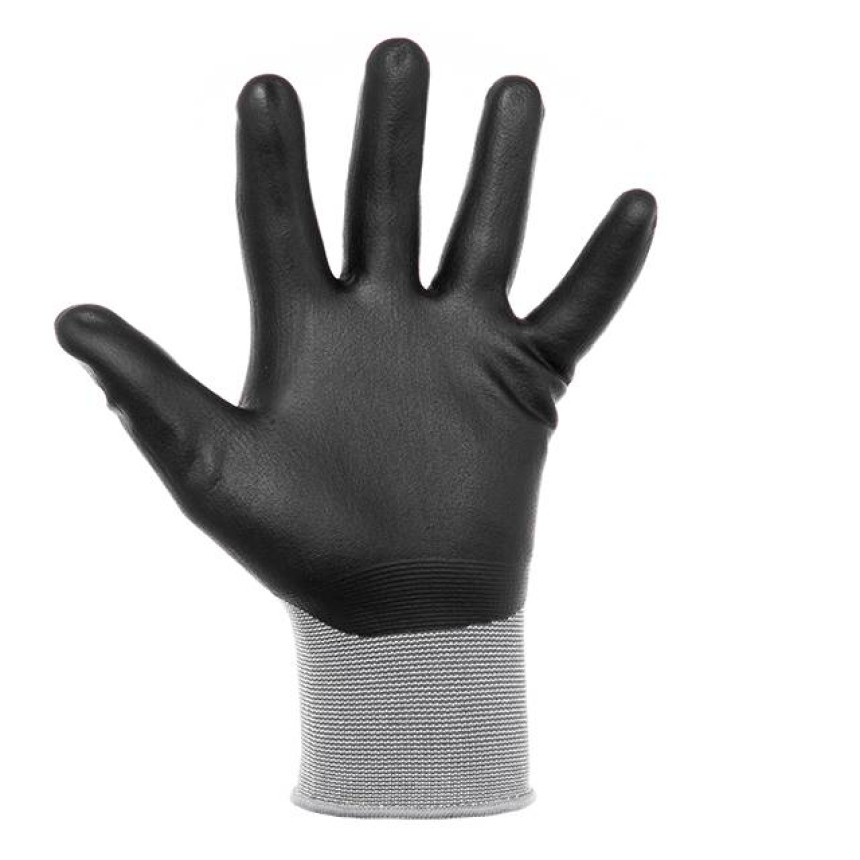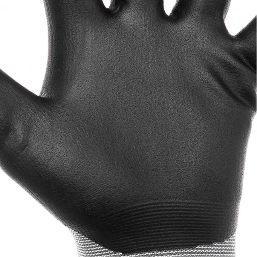 Покриття на долоні подвійне, поліуретан та нітрил, для більш стійкого захисту. Забезпечуються також протиковзні властивості та висока зносостійкість. Не пропускають мастило та бензин, якими можуть бути покриті деталі машин та механізмів. При цьому рукавиці дуже еластичні та не сковують рухів пальців. Стійкі до стирання та мають тривалий термін експлуатації.
