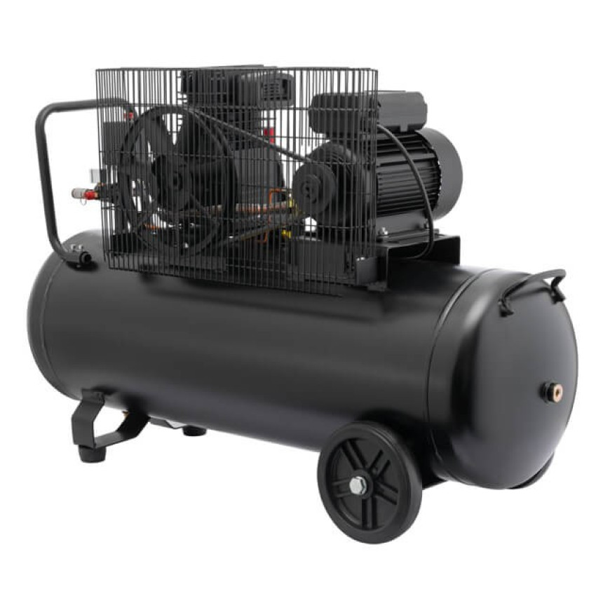 Компресор має ремінний привід від електродвигуна до головки з двома сталевими циліндрами. Це забезпечує ефективне охолодження і зменшує навантаження на двигун. Мідна обмотка двигуна збільшує ресурс служби, підвищує міцність та продуктивність компресора, що підтверджує 3 роки гарантії.