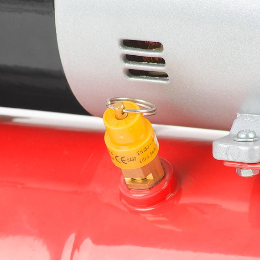 Для зливання вологи, що утворюється у процесі роботи, на дні ресивера розташований зливний клапан. Його потрібно періодично відкривати для зливання конденсату. Компресор PT-0001 має дуже скромні габарити (650*340*220 мм) та не займе багато місця на робочому майданчику.