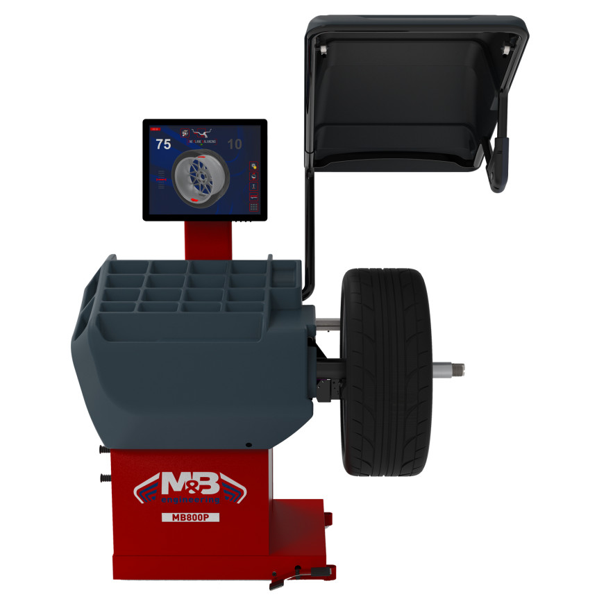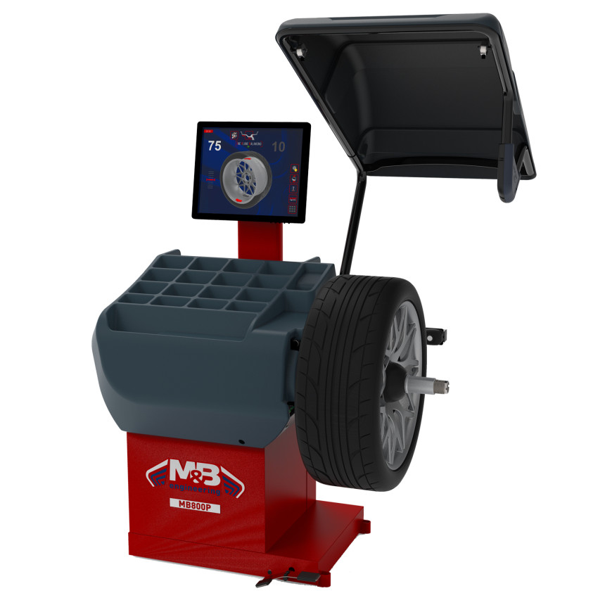 Балансувальний верстат MB800P комплектується безконтактною системою вимірювання відстані та діаметра коліс, яка з винятковою точністю та швидкістю виявляє розміри будь-якого профілю. Система для автоматичного визначення ширини дисків та програмне забезпечення для перерахунку допустимого значення дисбалансу в відповідно до ваги та розмірів кожного колеса. Лазерний покажчик, який вказує точне положення для прикріплення грузиків, що наклеюються всередині диска. Автоматичне обертання та фіксація колеса у ваговому положенні для полегшення застосування грузів. Пневматичне блокування колеса.