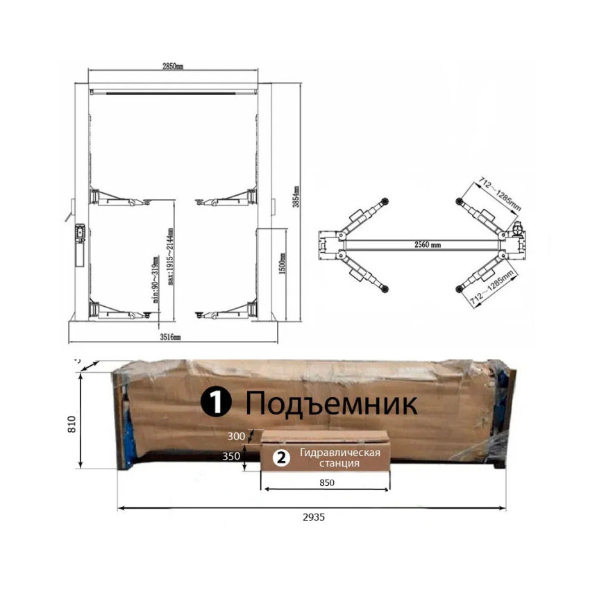 Вылет передних лап (3 секции) | 712-1285 мм | |