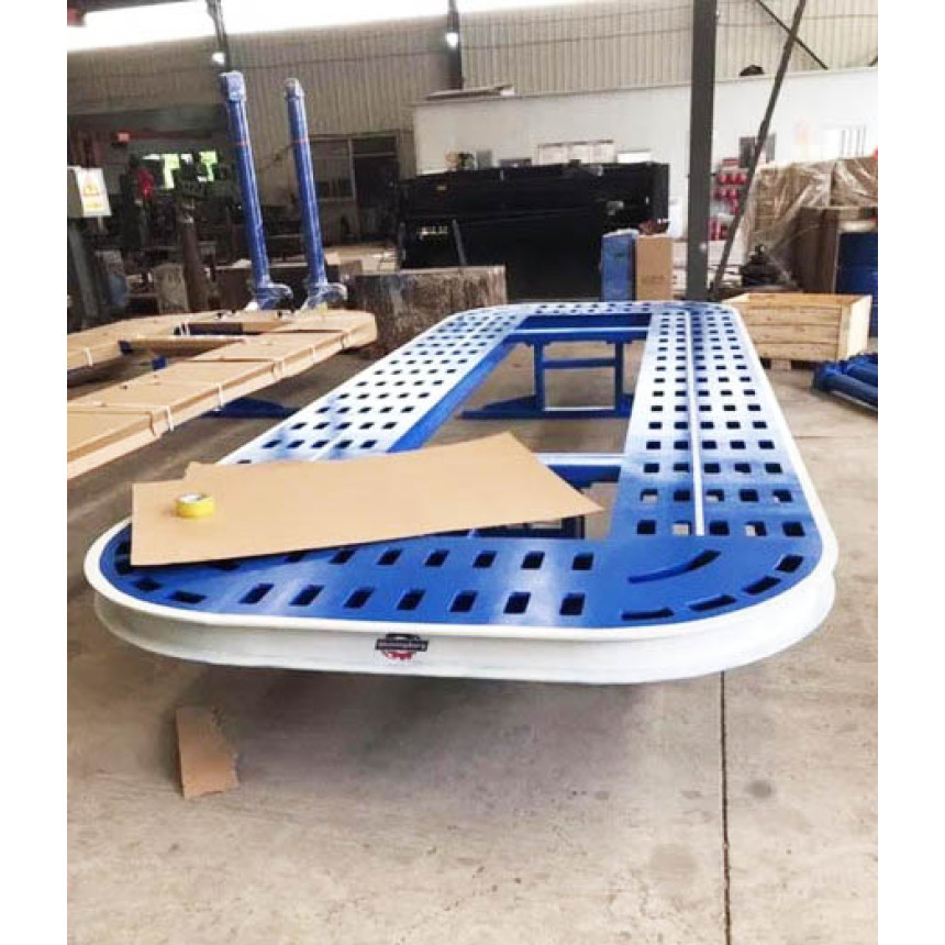 Предназначен для работы с легковыми автомобилями и внедорожниками, Размеры платформы - 5800 x 2100 мм• Высота подъема платформы - 560 мм• Высота стоек – 2250 мм• Давление в гидравлической системе - 70 атм• Рабочее давления воздуха - 8 атм• Грузоподъемность – 3500 кг• Максимальное усилие тяги - 10000 кг Угол приложения усилия - 360°• Вес-2800 кг Платформа изготовлена из марганцевой плиты, панель которой образована крупногабаритным металлорежущим станком с ЧПУ. Выемка гладкий без тепловой деформации. Все детали проходят дробеструйную обработку для устранения сварочных напряжений и повышения прочности поверхности, улучшая адгез Башни работают на 360 ° вдоль пути платформы; цилиндр работает вертикально без каких-либо составляющих сил. Гидравлическая система с хорошим дизайном является мощной и обеспечивает долгий срок службы и низкий уровень отказов. Переносная измерительная система проще для рабочих, механическая измерительная система 3D дополнительно. Более гуманизированная конструкция с одинаковым подъемом и равномерным падением позволяет легко регулировать высоту платформы. Высококачественные инструменты для цепей T8 и кованого листового металла 45 # просты и удобны в эксплуатации с длительным сроком службы.. Для нагруженных деталей, таких как направляющее кольцо башни и опора основного зажима, и т. Д. Используется литой блок для повышения сопротивления деформации. Главный зажим может зафиксировать положение и зажать автомобили быстро, точно и надежно Уникально разработанный основной зажим на скамье увеличивает область силы