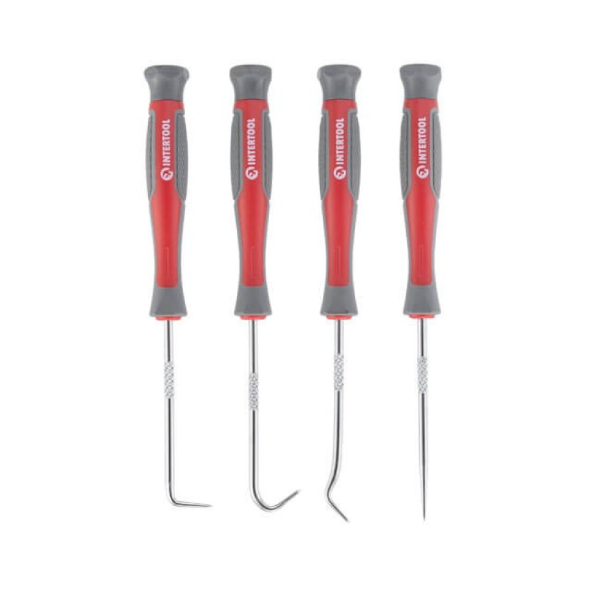 Набір гачків складається з чотирьох найбільш затребуваних типів інструменту. Такі шило-гачки широко використовуються в автосправі: для демонтажу резинок, сальників, ущільнювальних кілець, а також усюди, де необхідно підлізти тонким накінечником у важкодоступні місця.