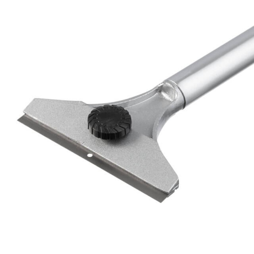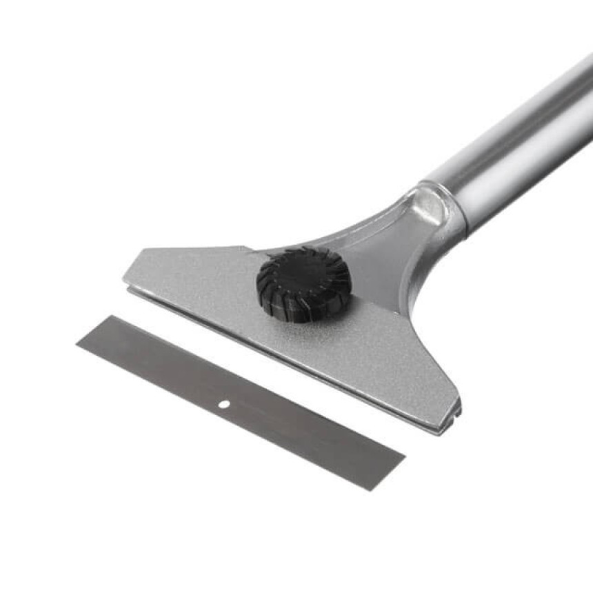 Скребок має міцну сталеву конструкцію з фіксованим лезом, довжина 100 мм. Зручна прогумована ручка забезпечує щільне зчеплення з долонею. Скребком комфортно працювати навіть вологими і брудними руками.