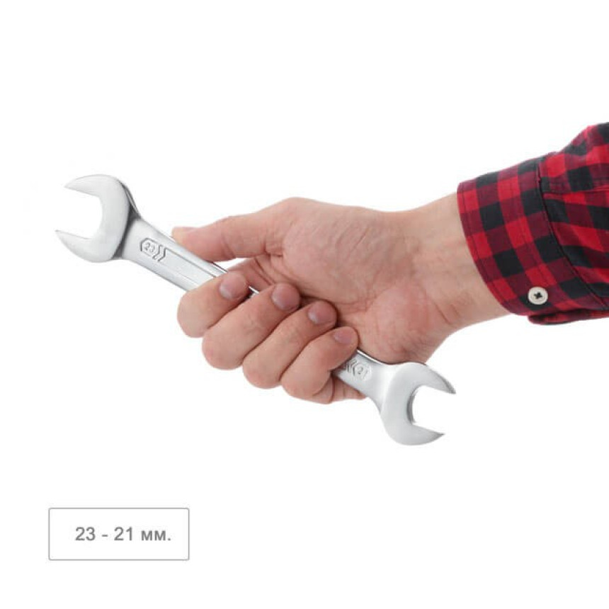 Ключ ріжкового типу, розмірами 21 - 23 мм призначений для монтажу та демонтажу різьбових з'єднань гайок та болтів.