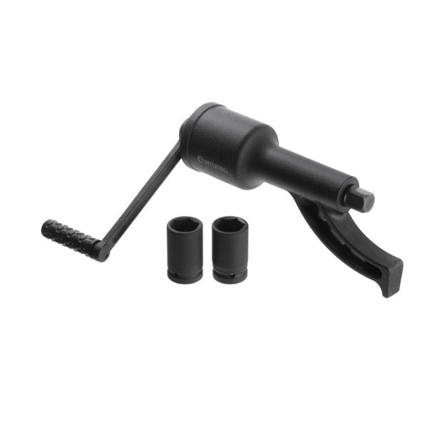 Перед початком роботи необхідно встановити ручку та обрати торцеву головку відповідного розміру. Для більш комфортної та ефективної роботи з ключем передбачена спеціальна ніжка, яка упирається в диск, забезпечуючи стабільне положення. Ручка має текстуроване покриття зі спіненого каучуку для кращої фіксації в руці.