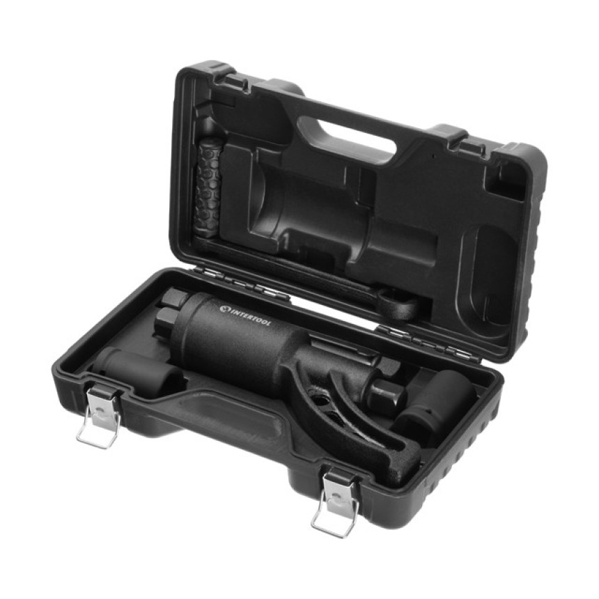 Міцний пластиковий кейс забезпечує зручне транспортування та безпечне зберігання всього набору. Кейс для роторного ключа оснащений металевими замками для додаткової безпеки зі вбудованою ручкою для зручного перенесення, щоб ви змогли замінити шини у будь-який час та в будь-якому місці.