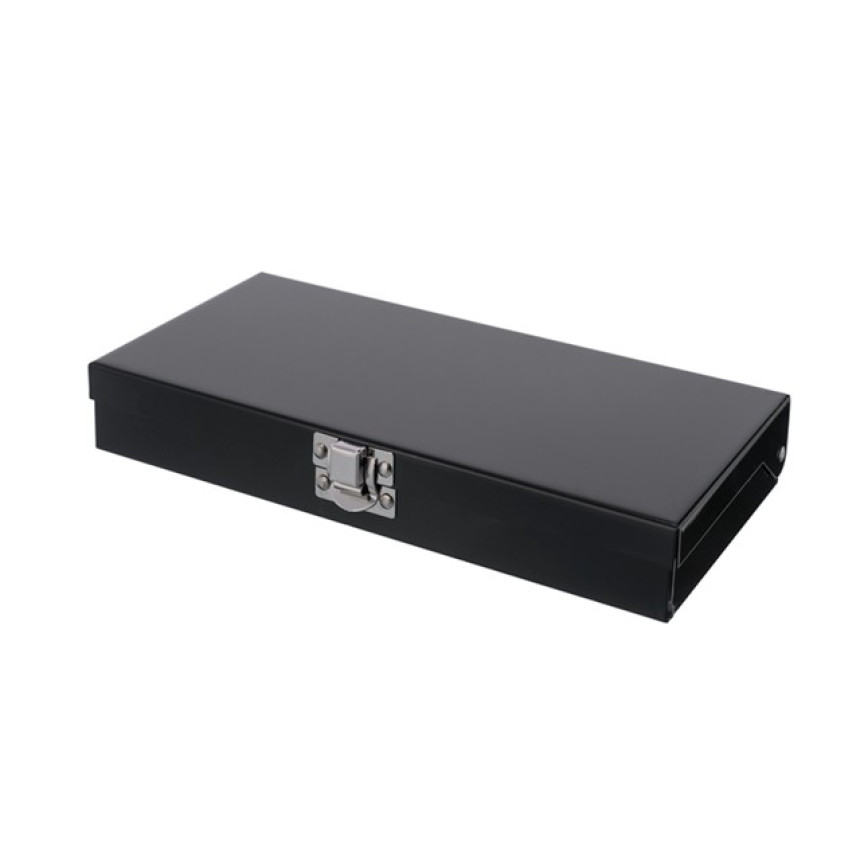 Всі інструменти розміщені у міцному металевому кейсі з металевими замками. Комплектуючі щільно зафіксовані у своїх посадкових місцях, а наявність поролонового прошарку не дозволяє висипатися набору при транспортуванні.