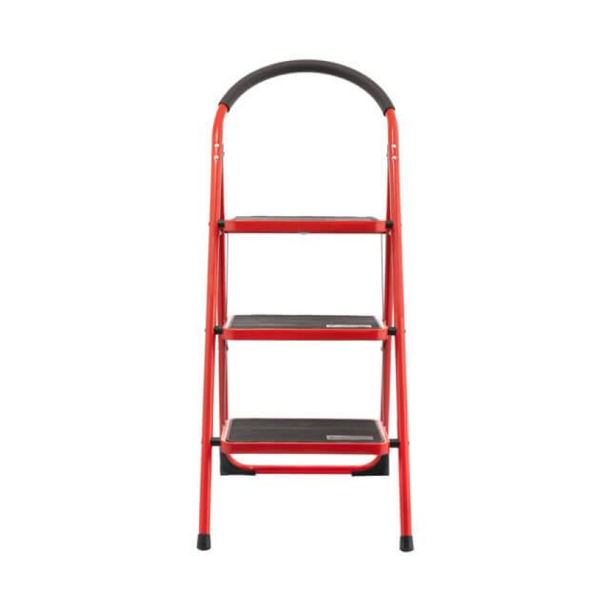 Передбачена система безопеки для захисту від випадкового складання драбини під час роботі роботы (на останній сходинці є спеціальний металевий гак, який фіксує відкидну частину). Ніжки обладнані пластиковими башмаками проти ковзання.