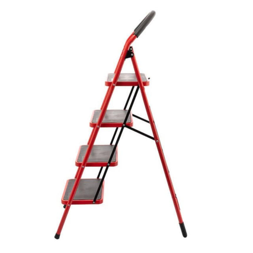 Передбачена система безопеки для захисту від випадкового складання драбини під час роботі роботы (на останній сходинці є спеціальний металевий гак, який фіксує відкидну частину). Ніжки обладнані пластиковими башмаками проти ковзання.