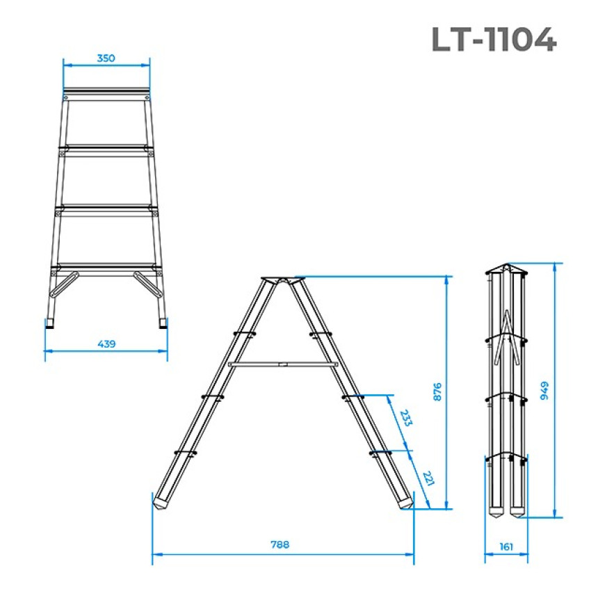 Стрем'янка алюмінієва двостороння 4 сходинки, висота 880 мм INTERTOOL LT-1104