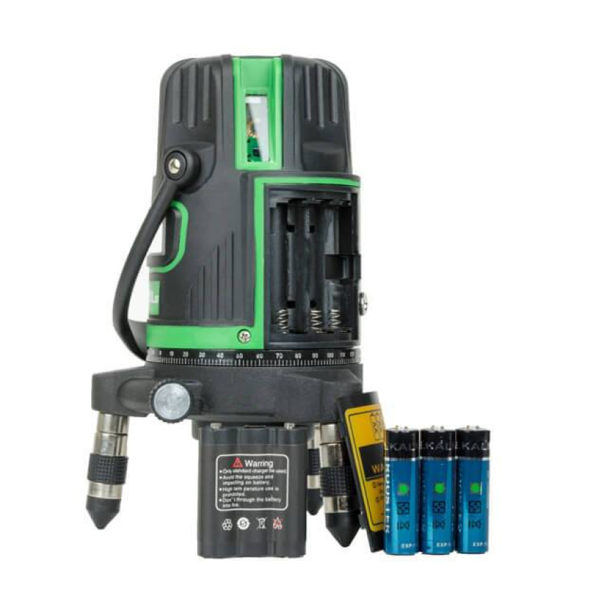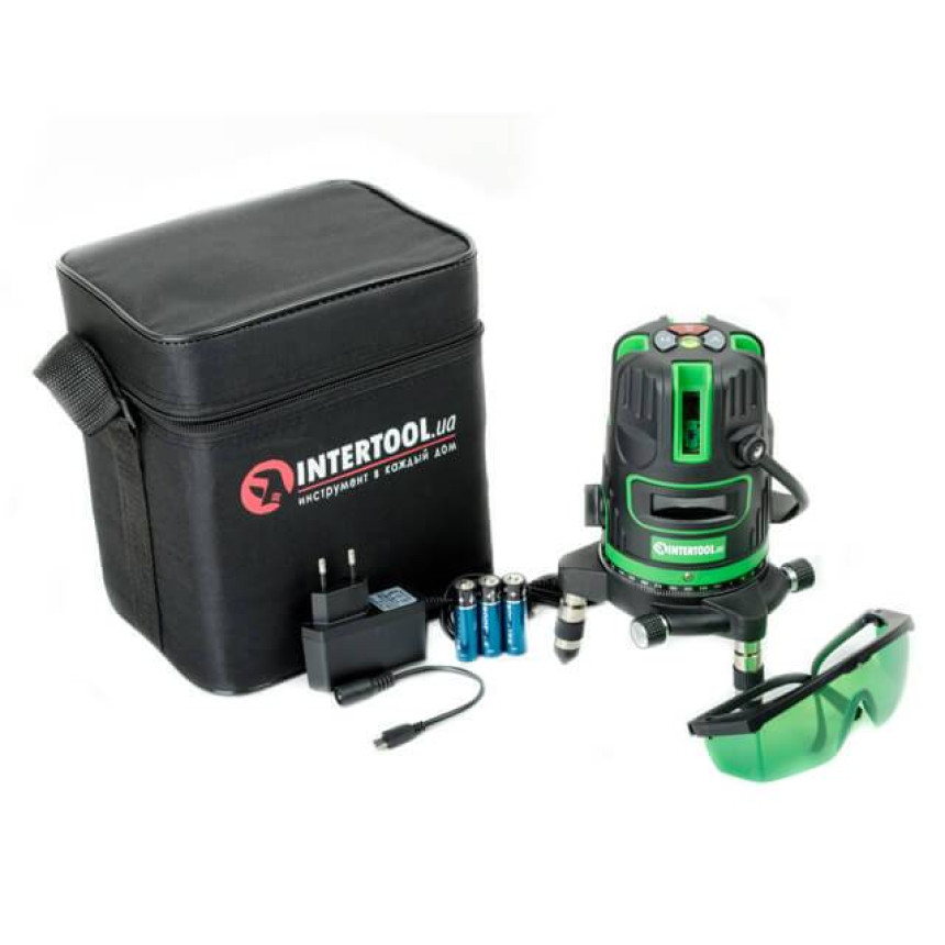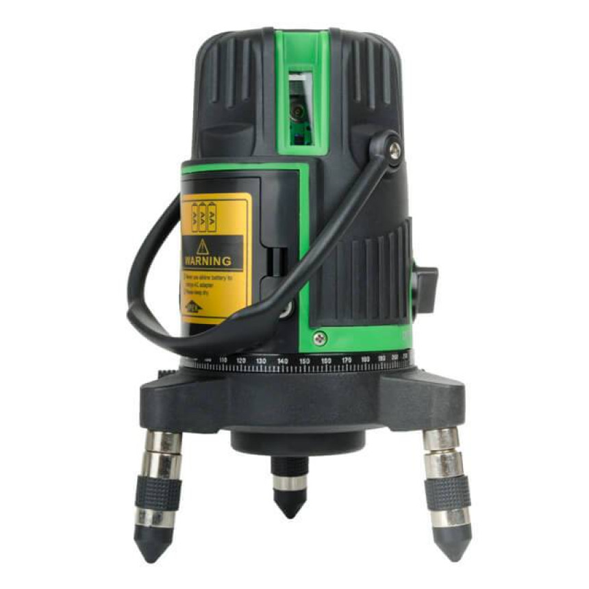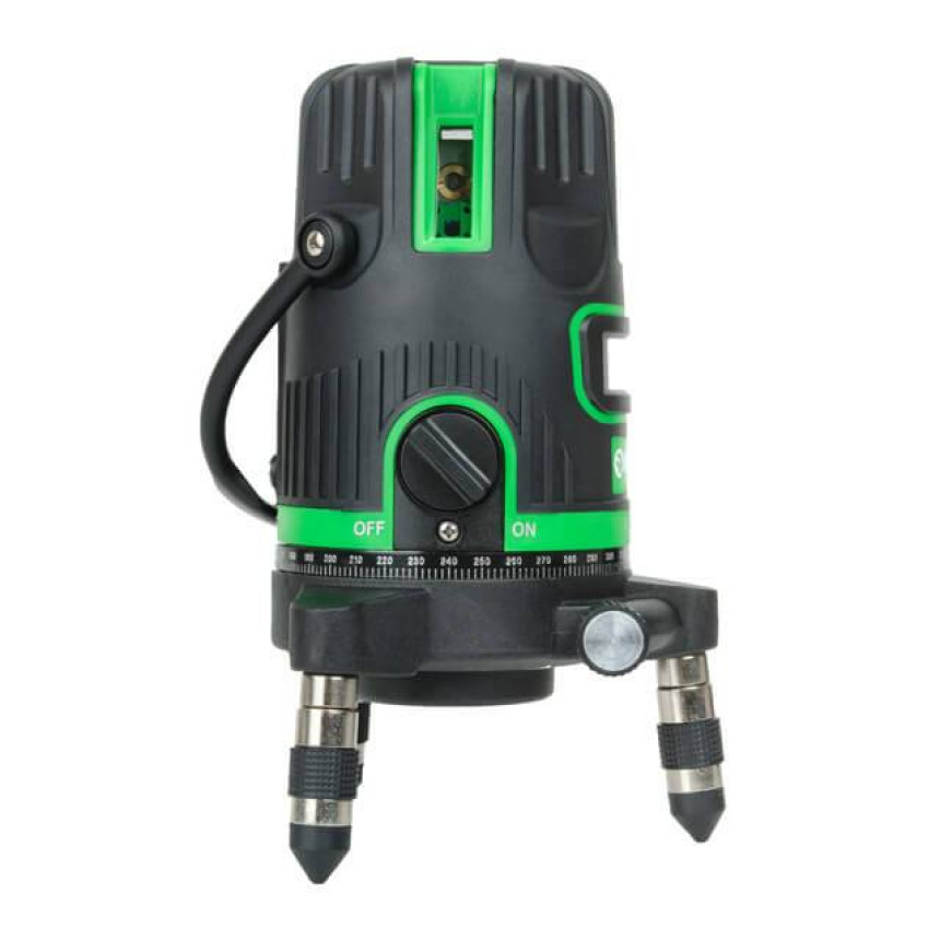 Володіє функцією самовирівнювання, яка забезпечить строго вертикальні та горизонтальні лінії високої точності. Промені проектуються до 20 метрів (4 вертикальних та 1 горизонтальний).