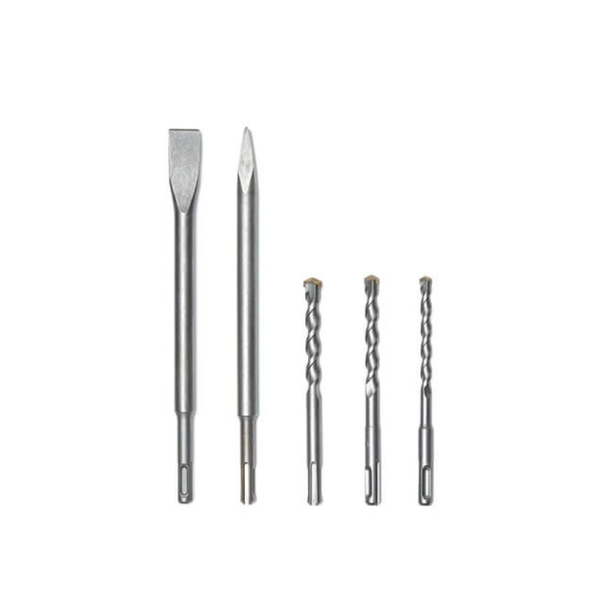 Перфоратор та всі елементи комплекту запаковані у надійний кейс зі зручною ручкою для транспортування та зберігання.