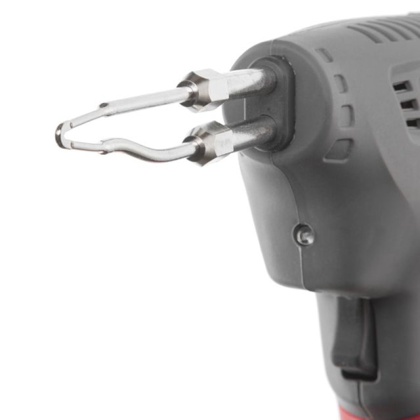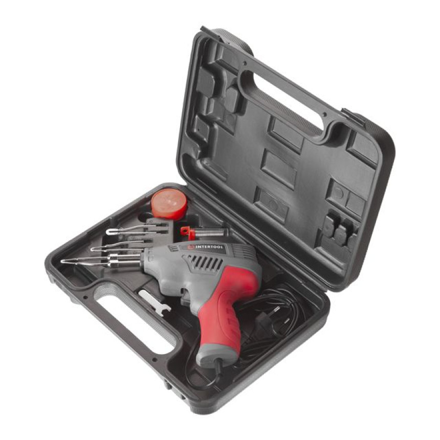 Паяльник виконаний у формі пістолета з курком, його зручно тримати в руці, повністю прогумована ручка для кращої фіксації в долоні. Жала паяльника швидко знімаються й так само швидко встановлюються за допомогою різьбових з'єднань. Міцний пластиковий корпус не деформується під впливом температур, термостійкий. Довгий мережевий дріт 1,5 метра для більш комфортної роботи. Набір інструментів компактно розміщується у зручному та міцному пластиковому кейсі для зберігання та транспортування.