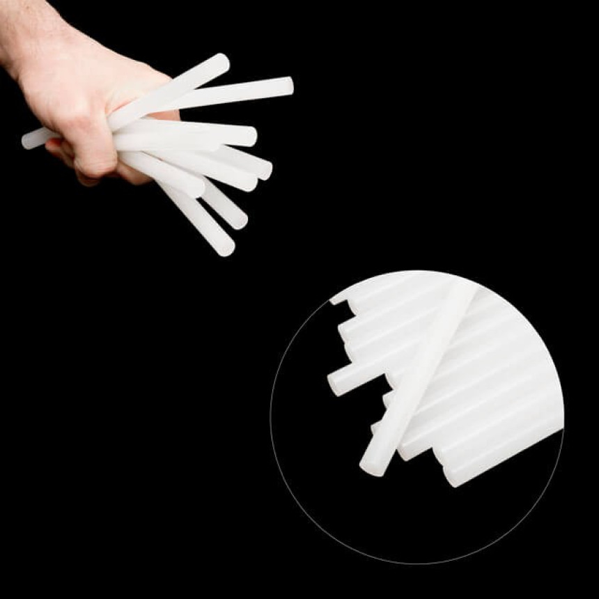 Стрижні виготовлені з високоякісної сировини марки Dupont. Такий термоклей складається з сополімеру ЕВА, він нетоксичний, не виділяє запаху та не містить розчинників. Високов'язкий клей дозволяє надійно скріплювати різні матеріали, твердішаючи в міру остигання через 30-40 секунд.