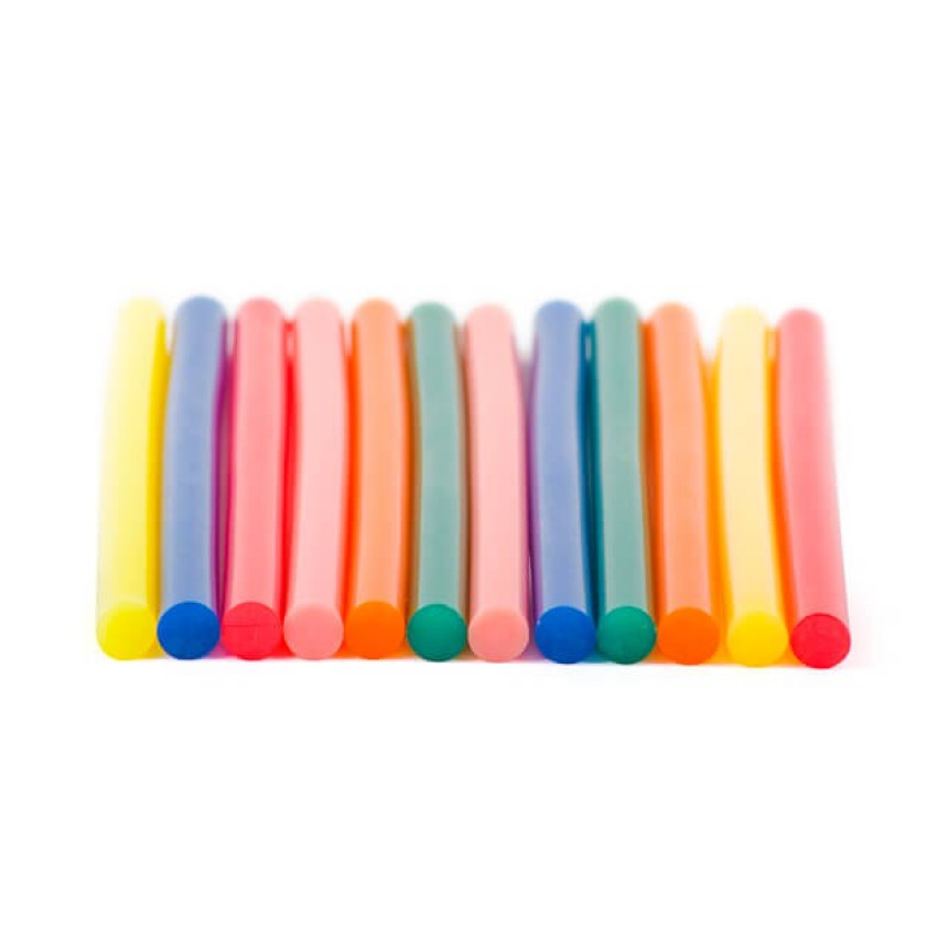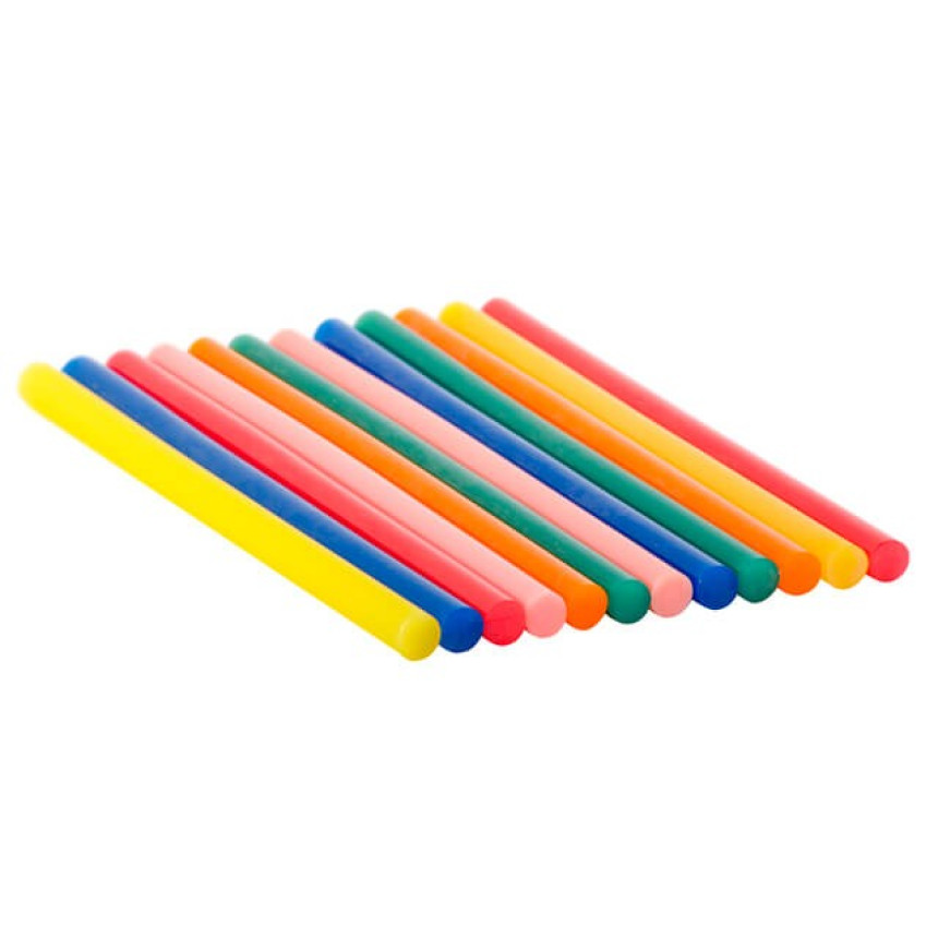 Клейові стрижні різних кольорів універсальні, підходять для різних завдань. Термоклей кольоровий: синій, зелений, оранжевий, червоний, жовтий, рожевий. В упаковці по 2 стержні кожного з кольорів. Діаметр стрижня 11,2 мм - один із найпоширеніших і найпопулярніших розмірів, підходить до будь-яких марок клейових пістолетів. Сам стрижень довжиною 200 мм, в упаковці 12 штук.