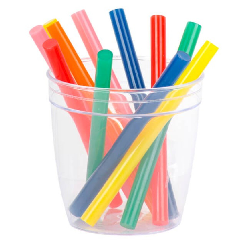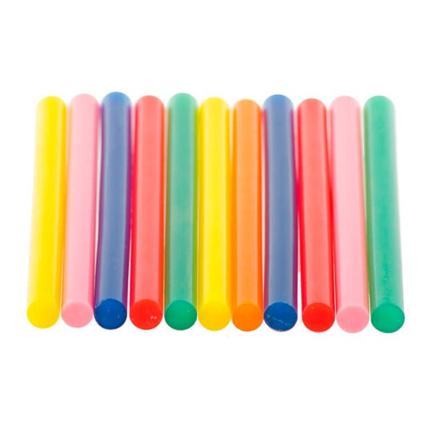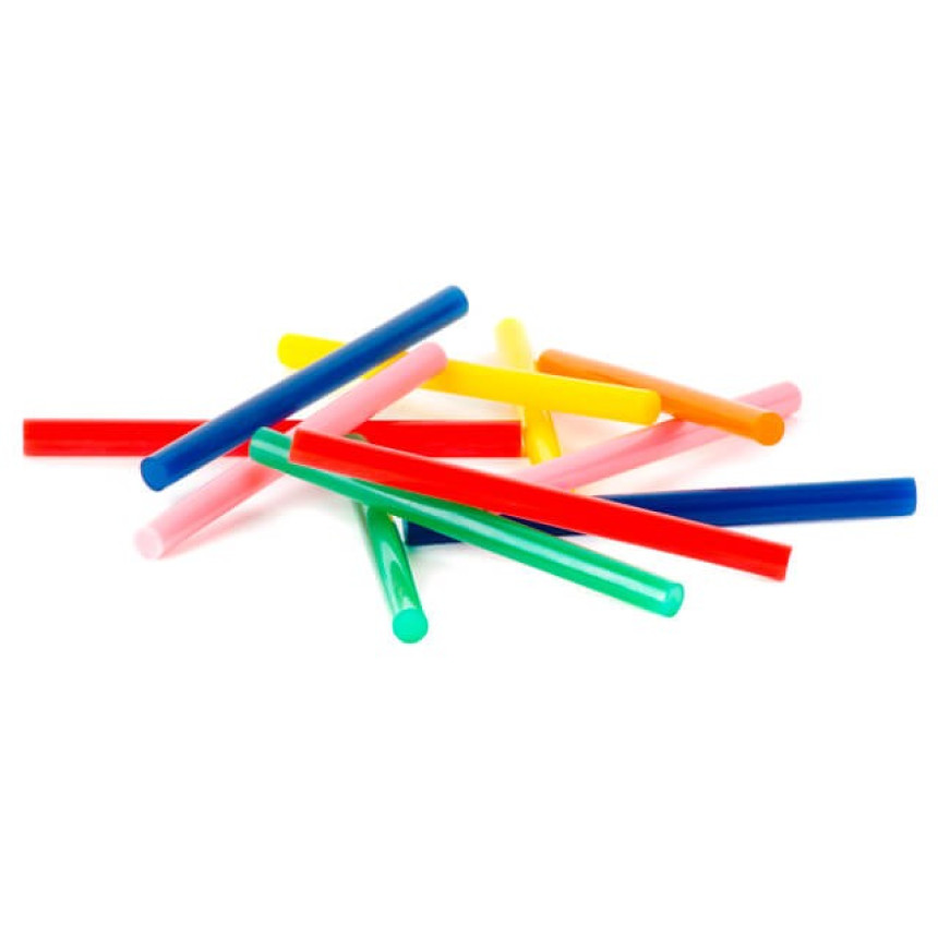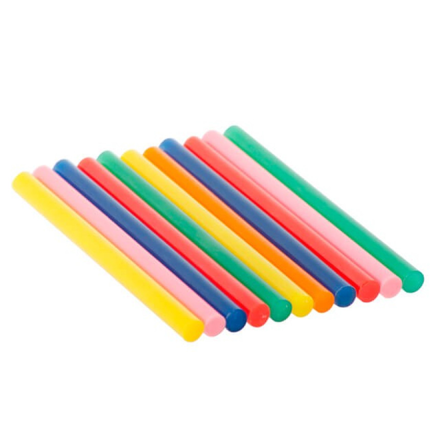 Клейові стрижні різних кольорів універсальні, підходять для різних завдань. Термоклей кольоровий: синій, зелений, оранжевий, червоний, жовтий, рожевий. В упаковці по 2 стержні кожного з кольорів. Діаметр стрижня 7,4 мм - один із найпоширеніших і найпопулярніших розмірів, підходить до будь-яких марок клейових пістолетів. Сам стрижень довжиною 100 мм, в упаковці 12 штук.
