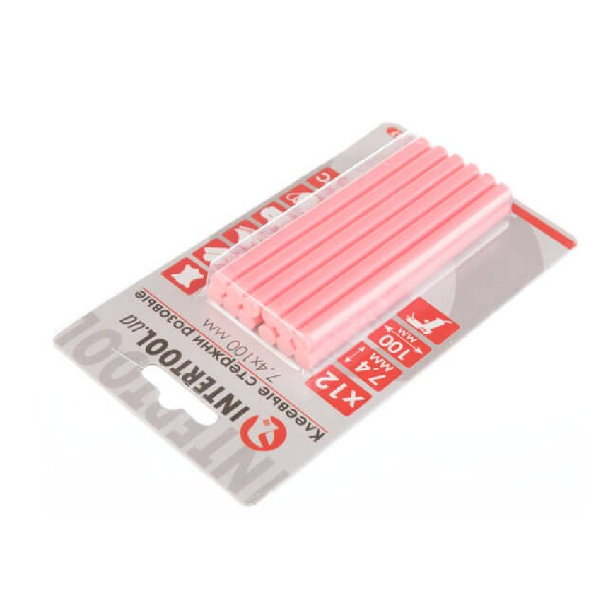 Клейові стрижні рожевого кольору універсальні, підходять для різних завдань. Діаметр стрижня 7,4 мм - один із найпоширеніших і найпопулярніших розмірів, підходить до будь-яких марок клейових пістолетів. Сам стрижень довжиною 100 мм, в упаковці 12 штук.