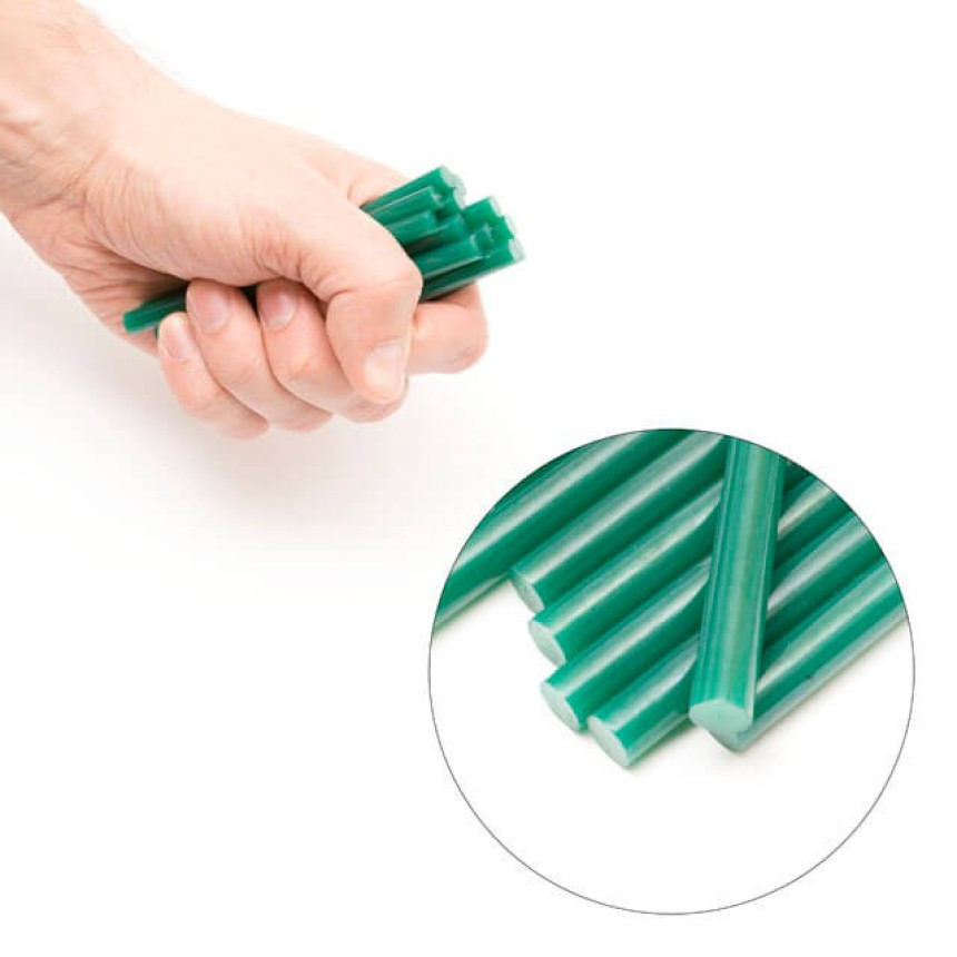Клейові стрижні зеленого кольору універсальні, підходять для різних завдань. Діаметр стрижня 7,4 мм - один із найпоширеніших і найпопулярніших розмірів, підходить до будь-яких марок клейових пістолетів. Сам стрижень довжиною 100 мм, в упаковці 12 штук.