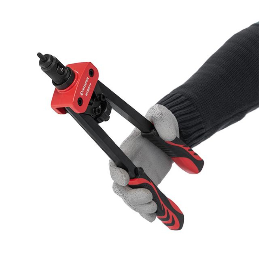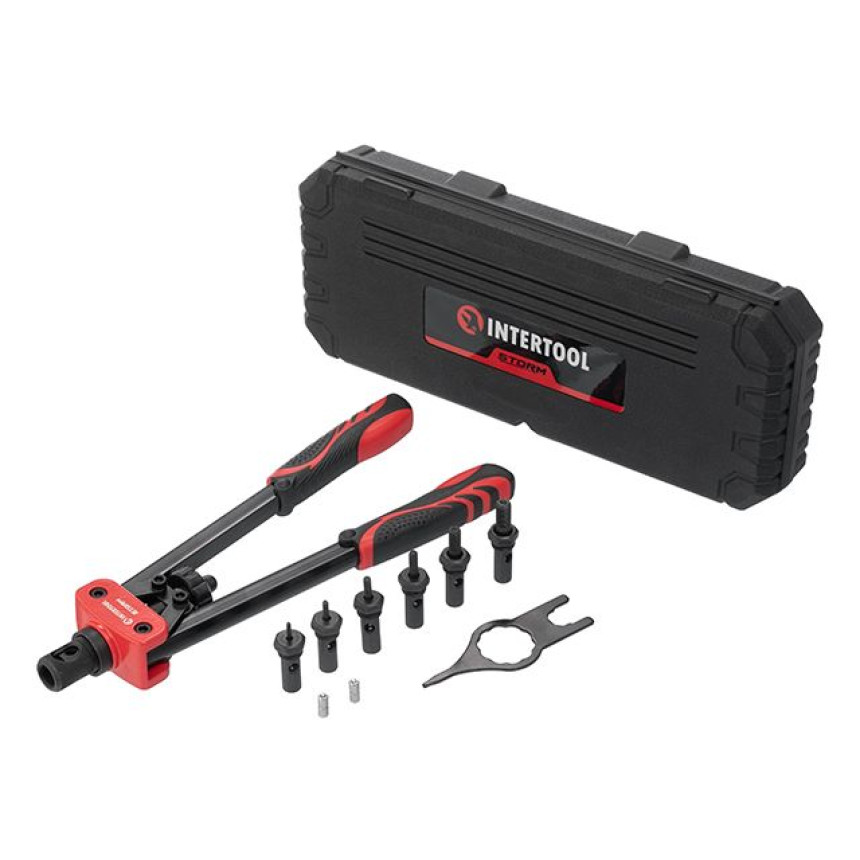 Заклепник RT-0020 серії STORM призначений для надійного скріплення будь-яких матеріалів за допомогою різьбових з'єднань нітогайок. Працює з металевими заклепками М3, М4, М5, М6, М8, М10. Використовується у багатьох сферах діяльності: на будівництві, для ремонту автомобілів і, звичайно ж, у побуті.