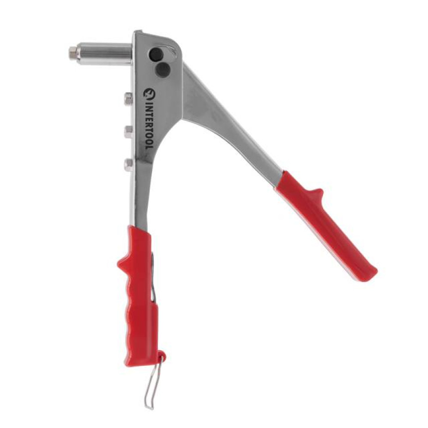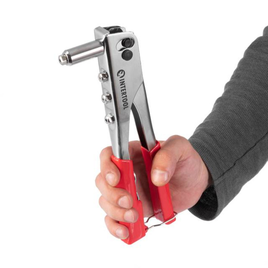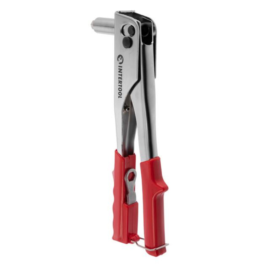 Пістолет заклепувальний ручний INTERTOOL RT-0004 призначений для встановлення алюмінієвих заклепок діаметром 2,4; 3,2; 4; 4,8 мм. Дозволяє скріплювати кілька шарів матеріалу або кілька деталей.