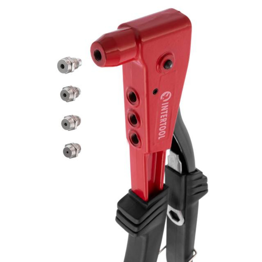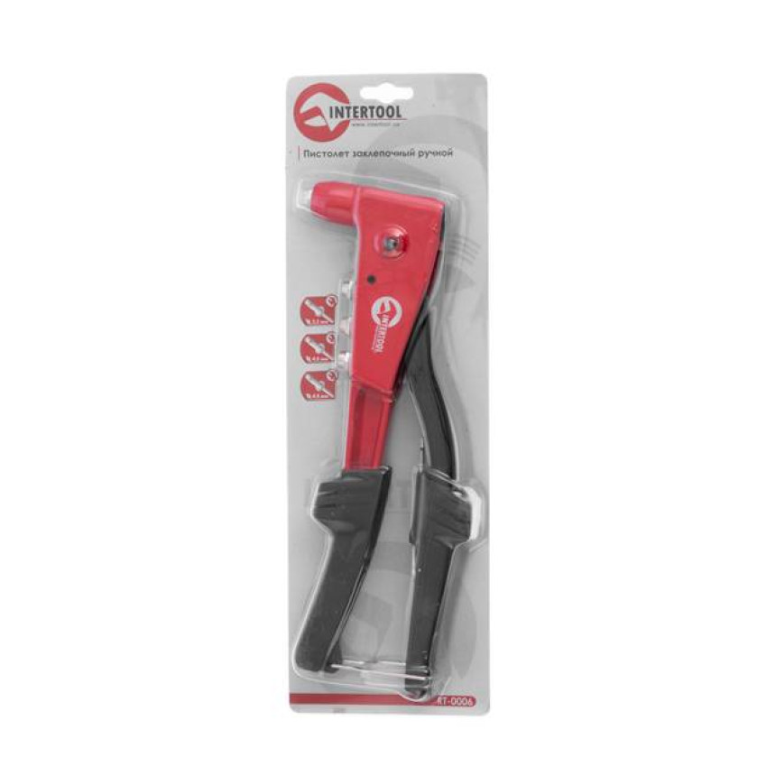 Пістолет заклепувальний ручний INTERTOOL RT-0006 призначений для встановлення алюмінієвих заклепок діаметром 3,2; 4; 4,8 мм. Дозволяє скріплювати кілька шарів матеріалу або кілька деталей.