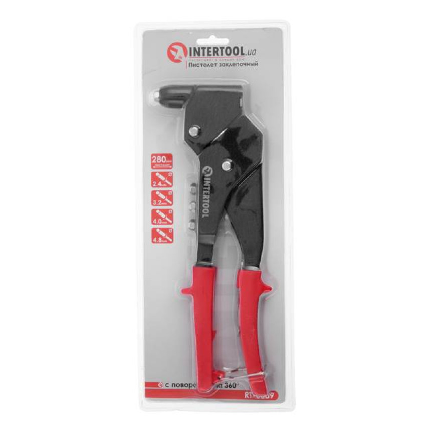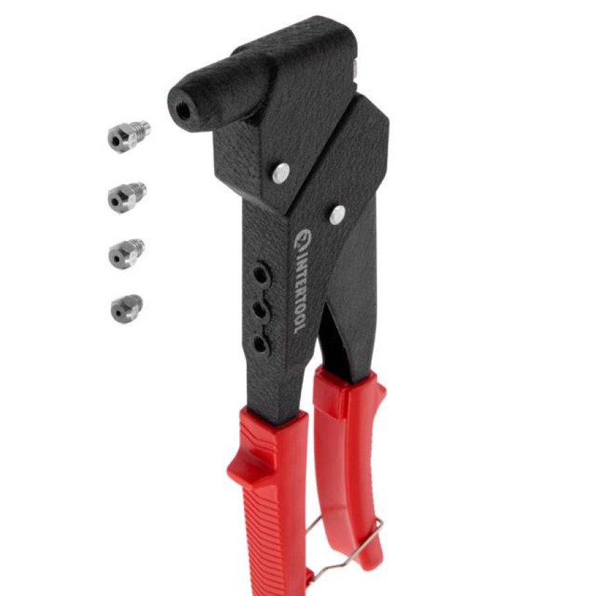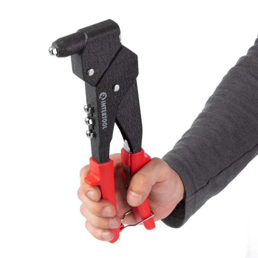Пістолет заклепувальний ручний INTERTOOL RT-0009 призначений для встановлення алюмінієвих заклепок діаметром 3,2; 4; 4,8 мм. Дозволяє скріплювати кілька шарів матеріалу або кілька деталей, товщиною від 0,5 до 8,5 мм.