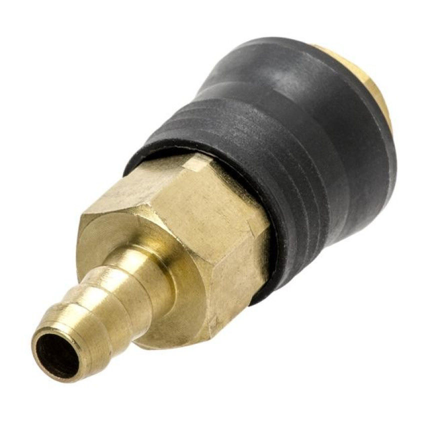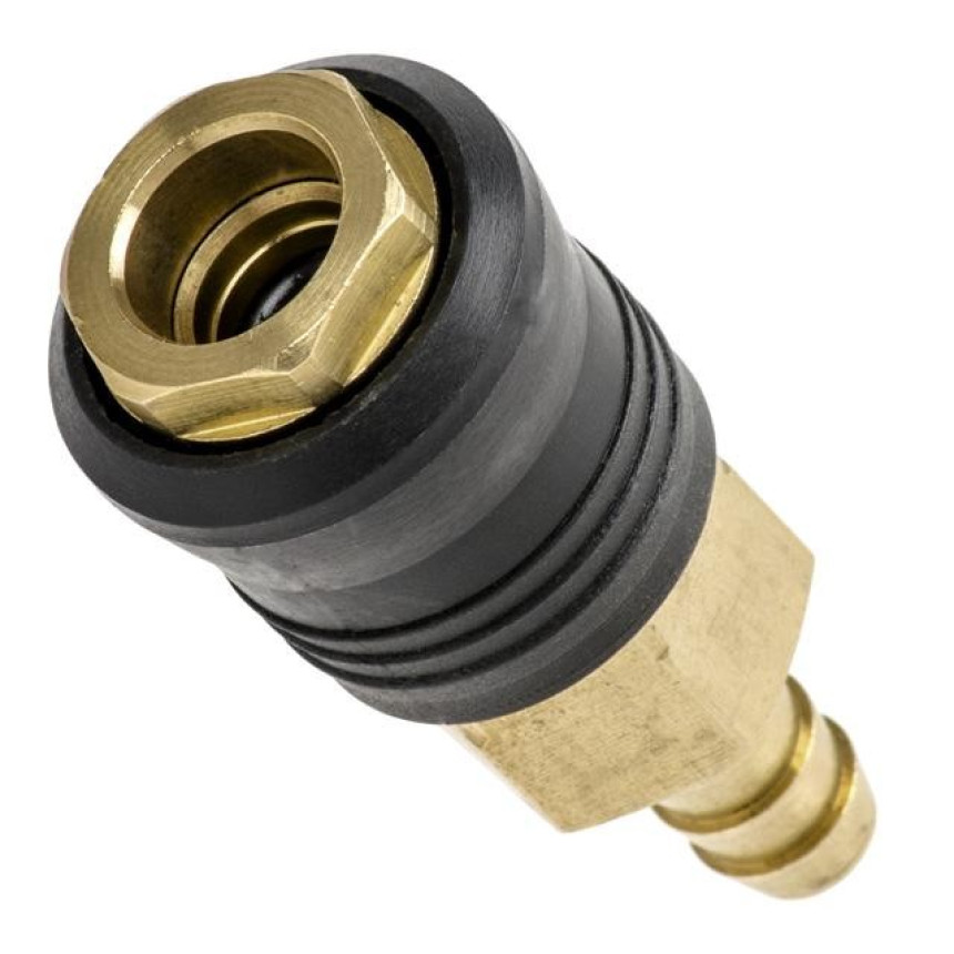 З'єднання виготовлене з латуні, має зручну накладку із ABS пластика.Швидкороз'єм PT-1813 з клапаном "мама" універсального типу, підходить для швидкороз'ємних з'єднань "папа" будь-яких видів. З іншого боку фітинг оснащений "ялинкою" на шланг, розміром 10 мм.