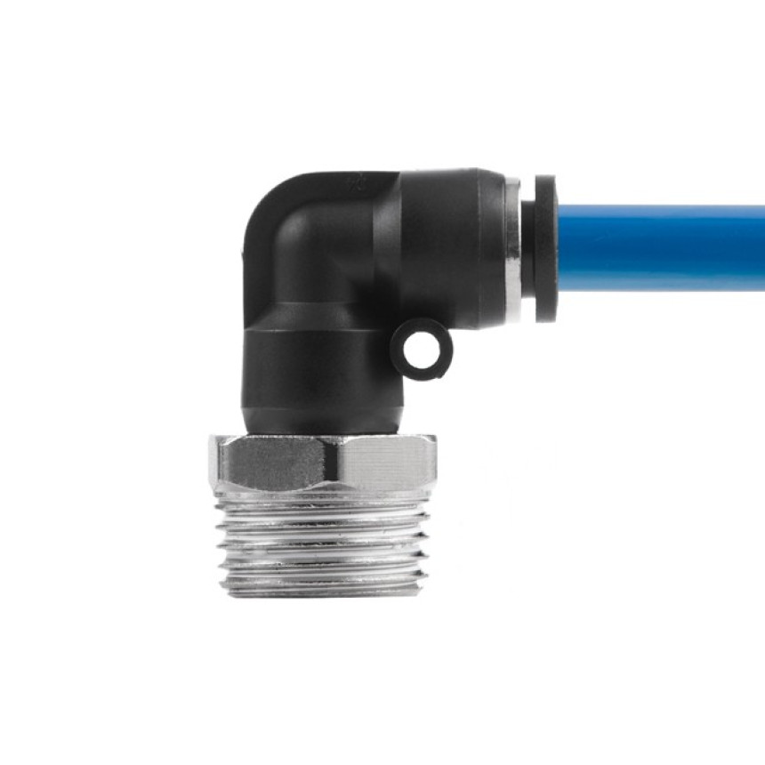 Цангове з'єднання L-подібної форми використовується для створення пневматичних магістралей і для монтажу пневмосистем. Забезпечує повністю герметичне з'єднання різних пневматичних шлангів без пошкодження їх поверхні (PU, PE, PA) - поліуретанових, поліетиленових, поліамідних тощо.