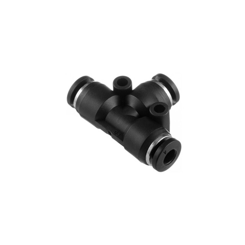 Цангове з'єднання T-подібної форми використовується для створення пневматичних магістралей і для монтажу пневмосистем. Забезпечує повністю герметичне з'єднання різних пневматичних шлангів без пошкодження їхньої поверхні (PU, PE, PA) - поліуретанових, поліетиленових, поліамідних тощо.