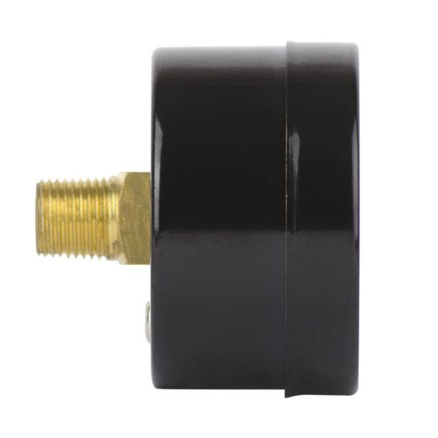 Корпус манометра виконаний з металу, штуцер знаходиться ззаду (осьовий). Такий манометр встановлюють на будь-які блоки підготовки повітря та фільтри з діаметром різьби 1/8".