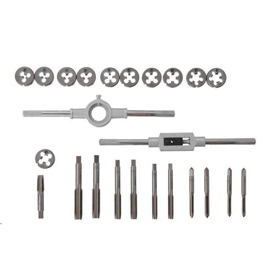 Набір мітчиків та плашок (лерок) призначений для нарізування внутрішніх та зовнішніх метричних різьб. Використовуються також для калібрування, відновлення та ремонту пошкоджених ділянок різьби. При нарізанні обов'язково використовуйте змащувальне мастило. Такий набір різьбонарізного інструменту відмінно підійде для слюсарів, домашніх майстрів та автомеханіків.