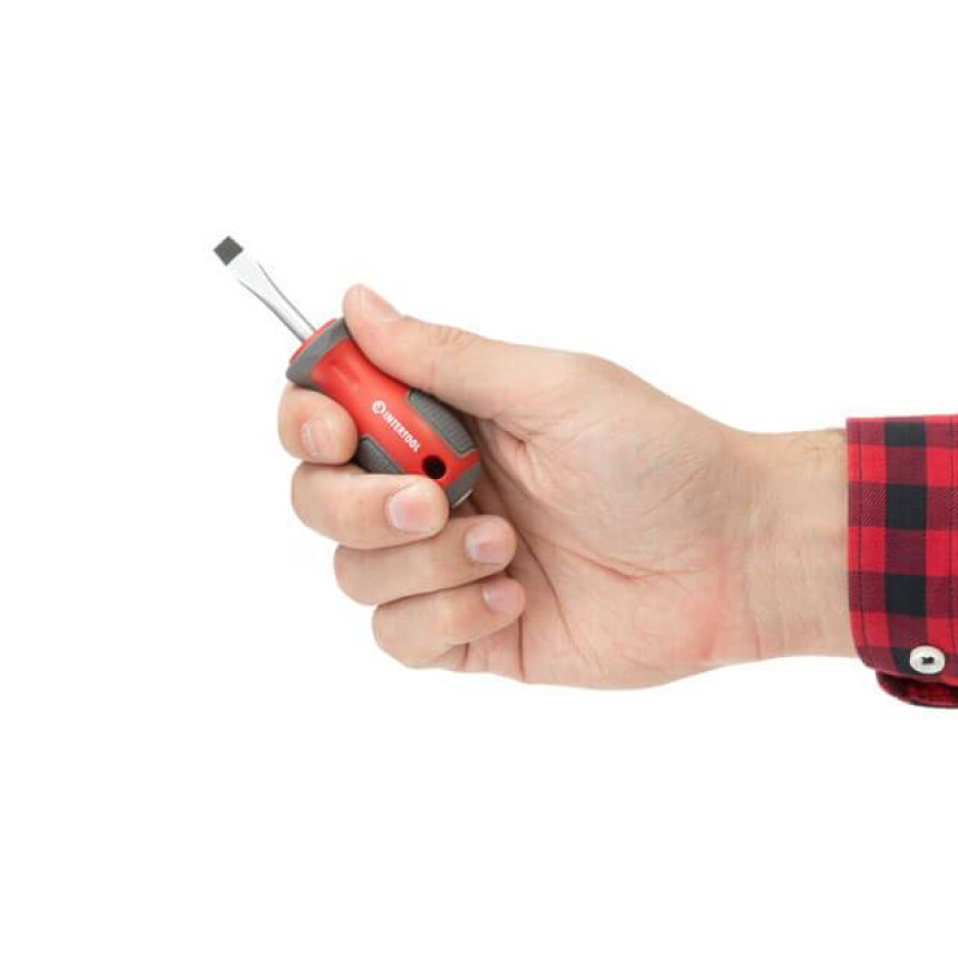 Форма ручки забезпечує максимальну ефективність від прикладеного зусилля. Прогумована двокомпонентна рукоятка зручно лежить у руці та не висковзує з долоні. Яскраве маркування у кінці дозволяє швидко знайти необхідний тип та розмір викрутки.