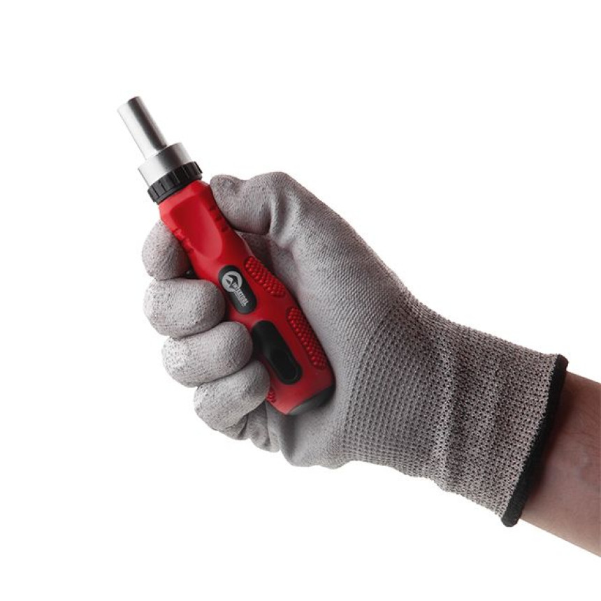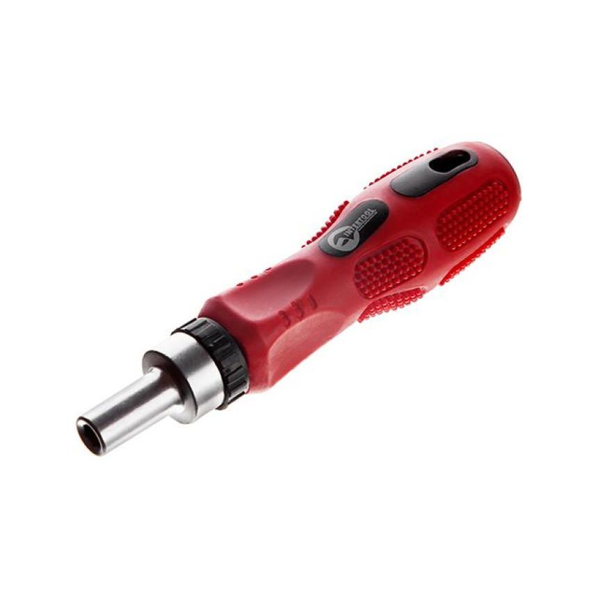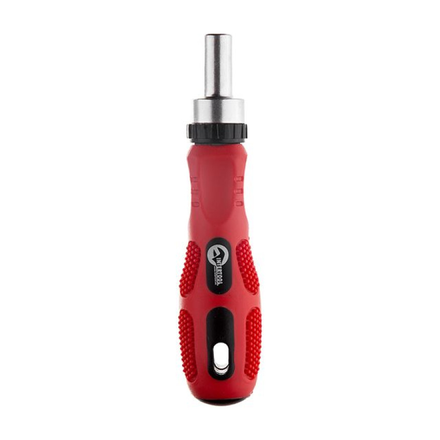 Всередині викрутки встановлений магніт для надійного утримування насадок. Храповий механізм дозволяє працювати в обмеженому просторі і у важкодоступних місцях, де немає місця для маневрів.