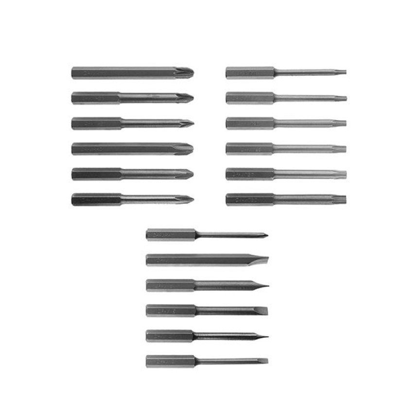 Викрутка, насадки і головки виготовлені з міцної Cr-V сталі, що відома всім майстрам своєю надійністю і витривалістю. До складу цієї сталі входять хром і ванадій, які надають виробу високої стійкості до зносу та корозії. Також сталь вирізняється довговічністю і не схильна до крихкого руйнування.